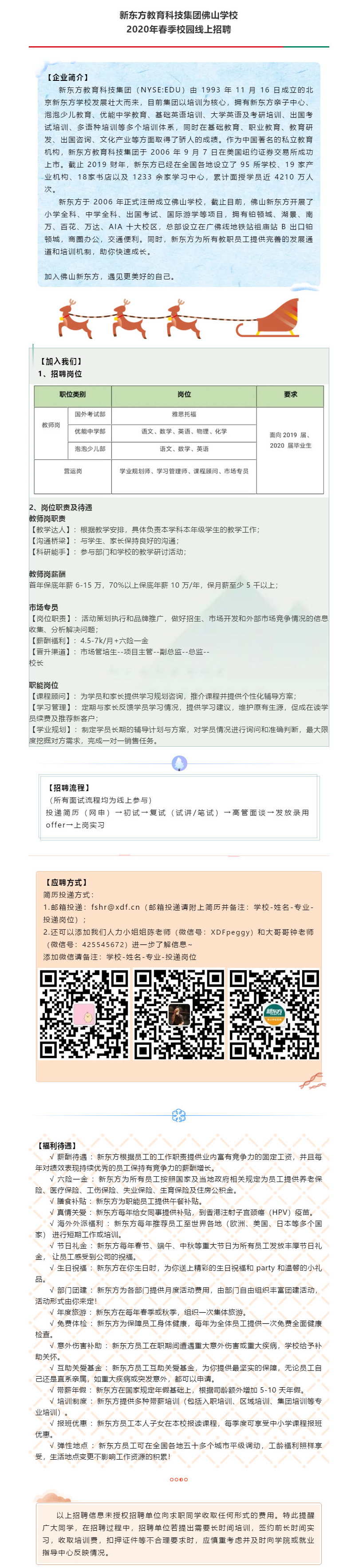 新东方教育科技集团佛山公司2020年春季校园线上招聘