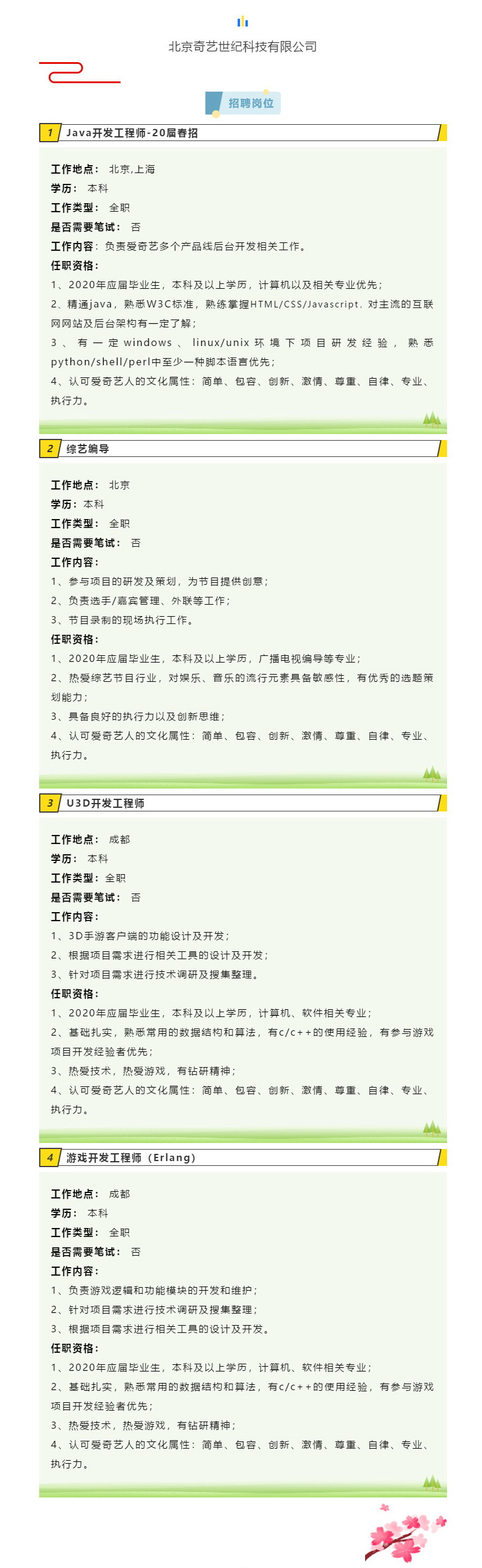 北京奇艺世纪科技有限公司招聘