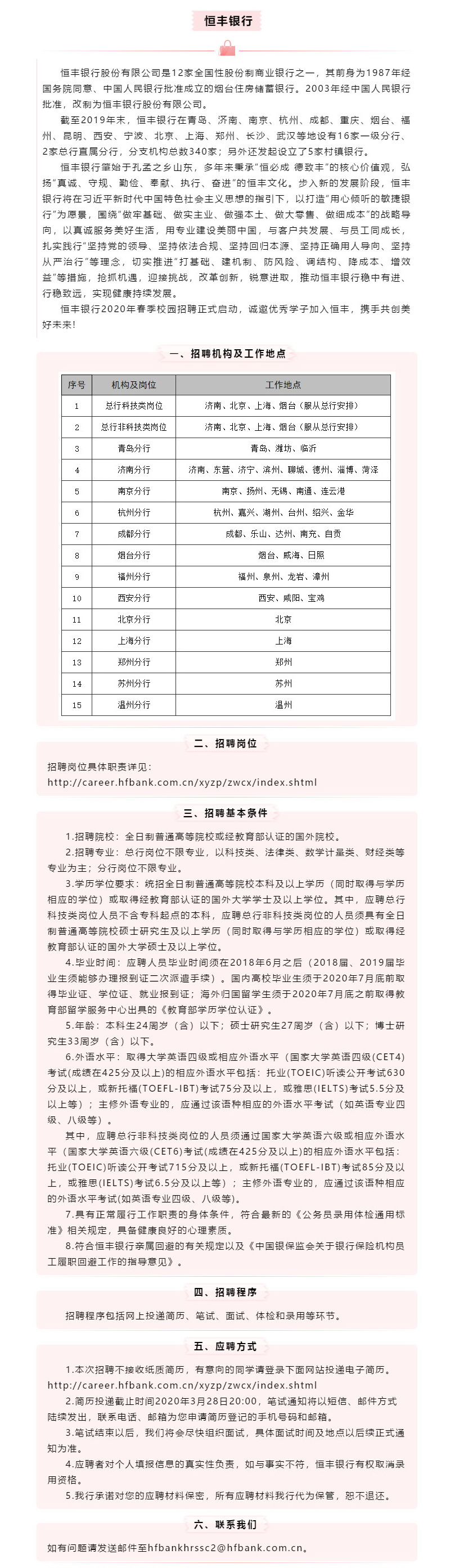 恒丰银行招聘