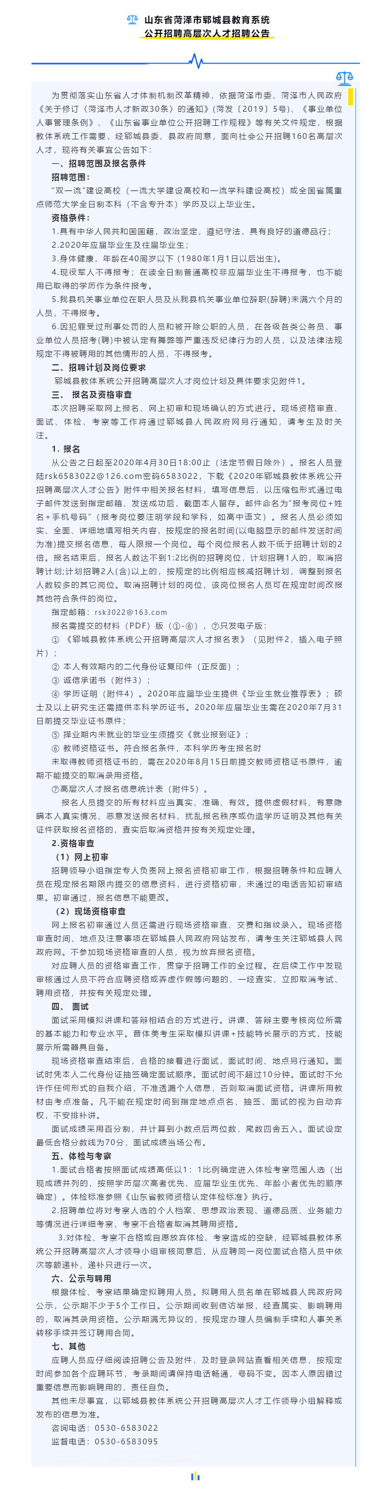 山东省菏泽市郓城县教育系统公开招聘高层次人才