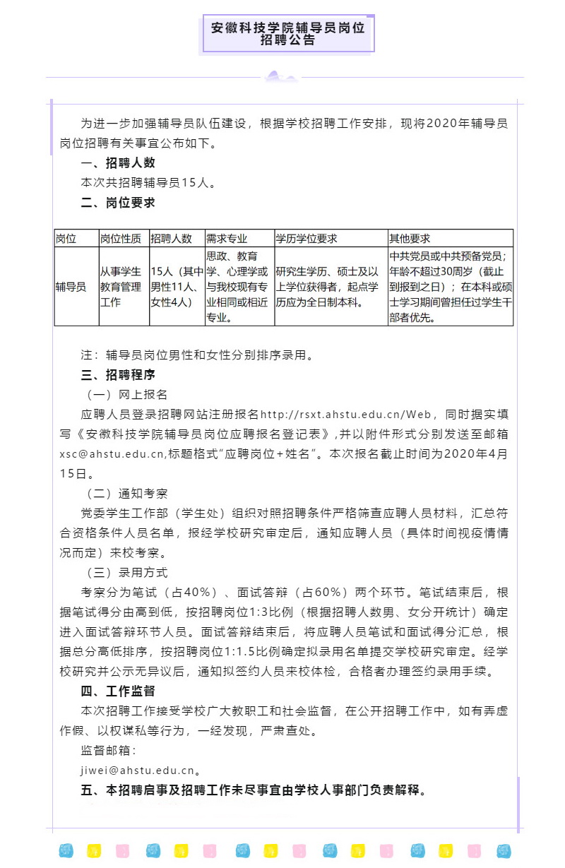 安徽科技公司辅导员岗位招聘