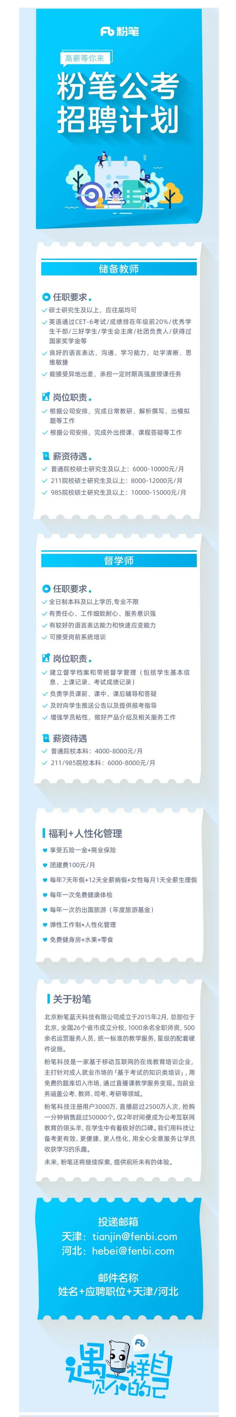北京粉笔天下教育科技有限公司天津分公司招聘