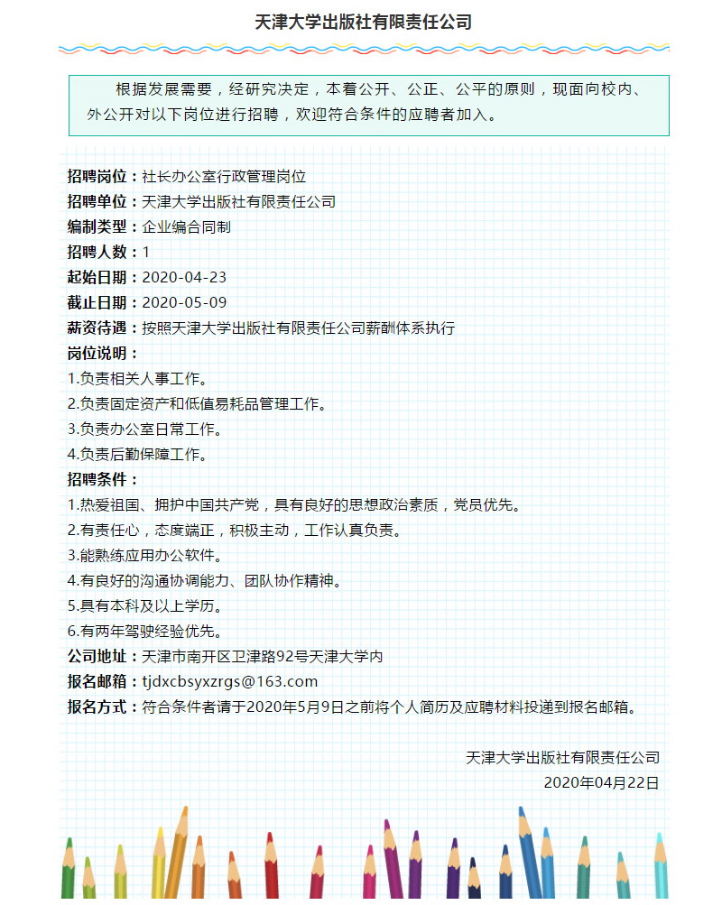天津大学出版社有限责任公司招聘