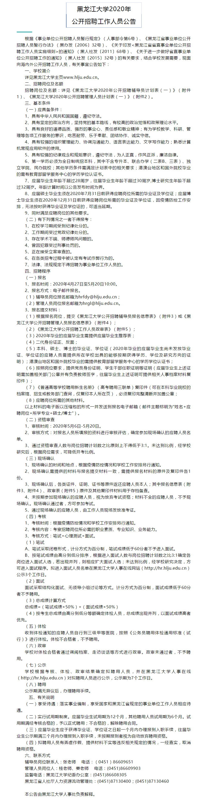 黑龙江大学公开招聘工作人员