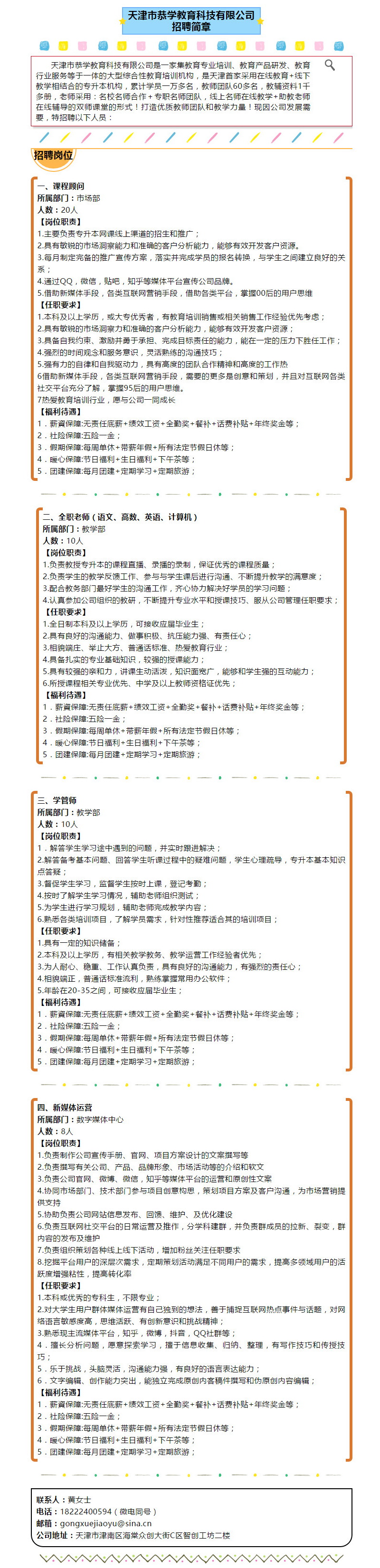 天津市恭学教育科技有限公司招聘