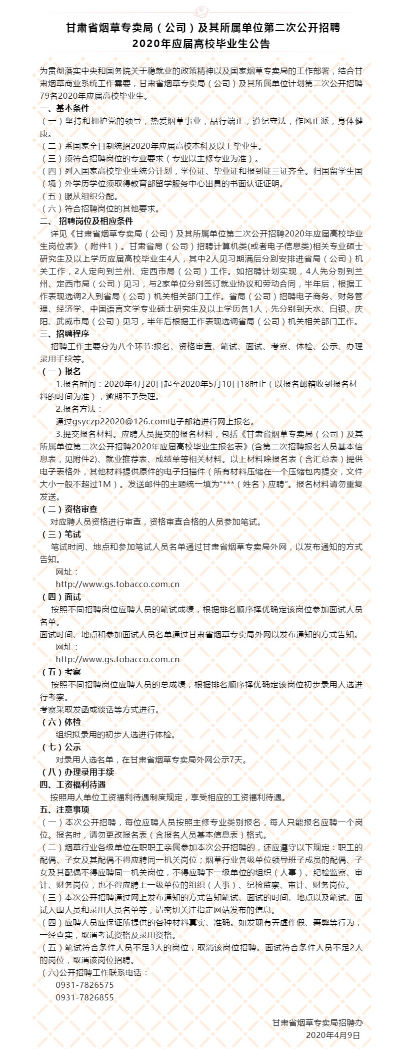 甘肃省烟草专卖局(公司)及其所属单位招聘