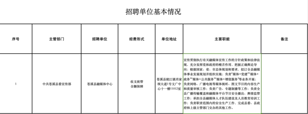 本公告中涉及的招聘岗位、招聘条件、报名、资格审查、考试、体检、考察等事宜,请向苍溪县融媒体中心咨询。未尽事宜,由苍溪县人力资源和社会保障局负责解释。