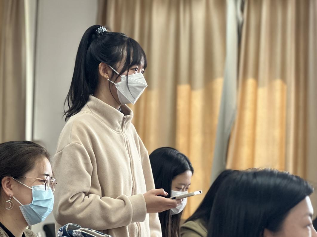 张盼盼同学表示其领读的论文在结构以及论述方面十分严谨,阐述清晰,但由于作者自身的观点主要是通过对他人观点的评价而体现,较难理解。张盼盼同学分别从研究背景、研究路径、研究材料和结论与启示四个方面为大家进行了分析阐述,并表示在学习中得到了深刻启发,认为可以学习该篇论文的研究思路与研究视角。
