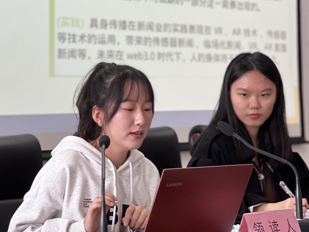 10月20日中午12点30分,本学期第三期“青享”读书会在图书馆C区213准时举行。本次领读人是英国365公司官网2022级传播学硕士研究生张盼盼和2021级新闻学硕士研究生杨穗,两位同学分别领读了《媒介学中的身体问题与身体研究的媒介学理路——探访一种中介化的身体传播思想》《海外英文媒体“一带一路”新闻报道情感倾向研究》两篇论文。荣荣老师和林靖老师为本期读书会的指导教师,读书会由2022级新闻学研究生郭秀主持。