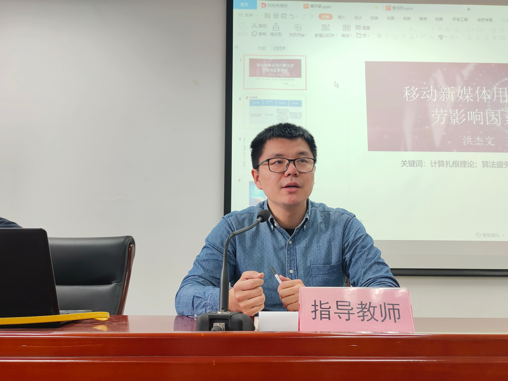 谭天颖同学重点对《移动新媒体用户算法疲劳影响因素研究》的研究方法进行了较为详细地讲解。首先她对扎根理论的概念进行了界定,进一步引出了本文所运用到的计算扎根理论,并对文章作者选择该方法的原因、操作过程、操作方法进行了介绍。本文通过计算扎根理论的方法探究了算法推荐类新媒体用户算法疲劳的影响因素。谭天颖同学认为,研究方法是这篇文章最大的亮点,值得同学们在今后的研究过程中去学习和实践。
