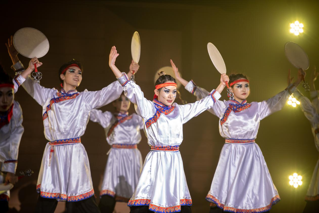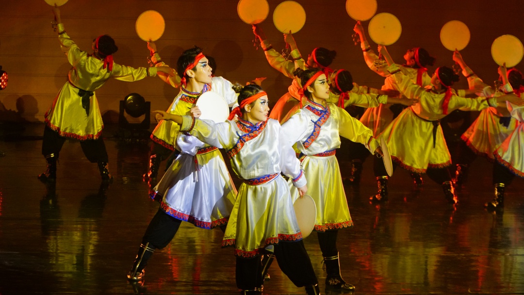 查干萨日,是蒙古族一年之中最隆重的节日,相当于汉族春节的年节。舞蹈《查干萨日·礼赞》将蒙古族人民英勇战斗、历经磨难的民族历史浓缩。舞者们以蒙古族历史的引领者与继承者的身份,带领大家回顾蒙古族人民曲折的奋斗历程,歌颂勇敢的蒙古族同胞,为党和各族同胞献上一曲赞歌。