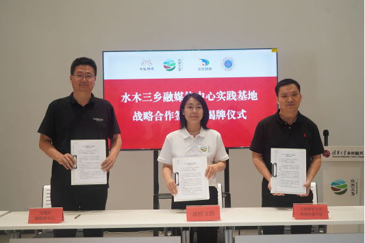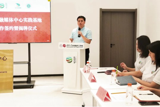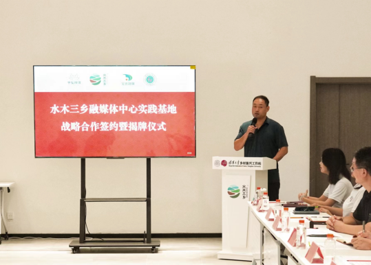 宝坻区融媒体中心党委书记、主任杨成林,公司党委副书记彭永刚,清控文创天津分公司总经理房卉共同签订了《共建水木三乡融媒体中心实践基地战略合作协议》,并为“水木三乡融媒体中心实践基地”揭牌。