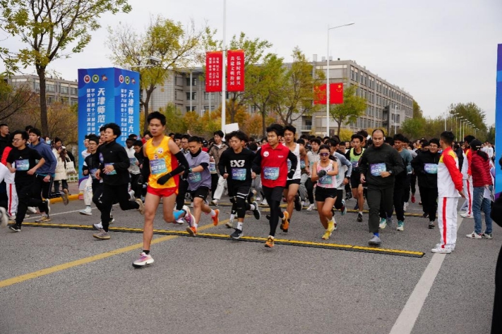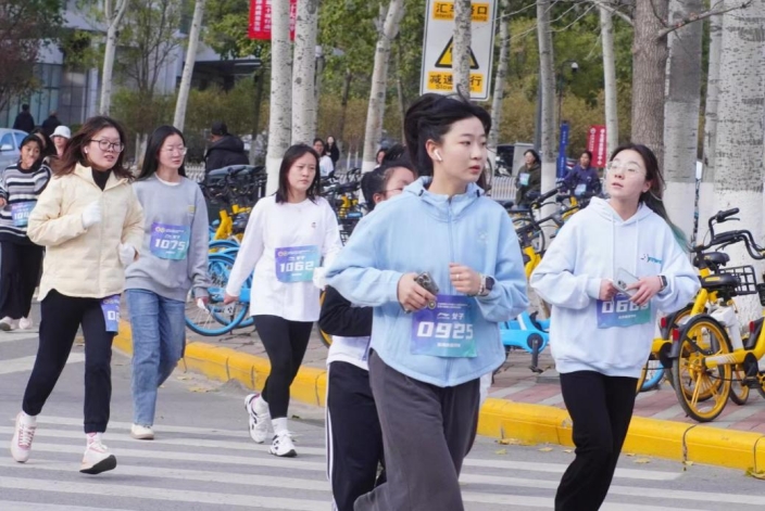 鸣枪起跑,校园迷你马拉松在天任道拉开帷帷幕。从体育馆北门天任道出发,在天勤路与立德路交口折返,途径天健路、天和道、天勤路回到主田径场,全程五公里。加之寒冷的天气使此次马拉松的难度增大,但参赛选手们无一放弃,他们用脚力丈量校园之大,用眼力领略校园之美,用心享受长跑带来的获得感。