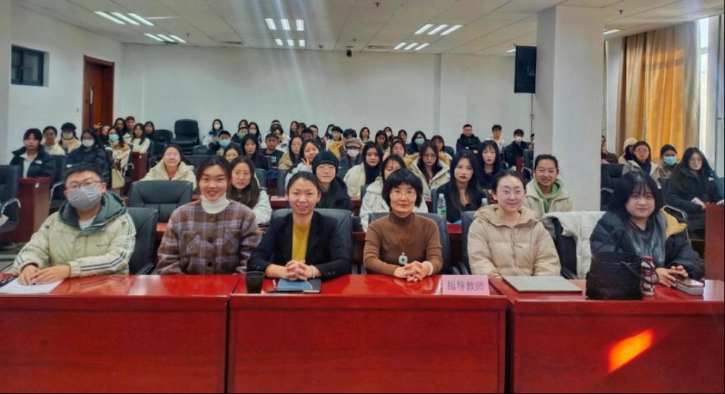 在热烈的掌声下,本学期第四期“青享”读书会圆满结束,两位老师与同学们合影留念。