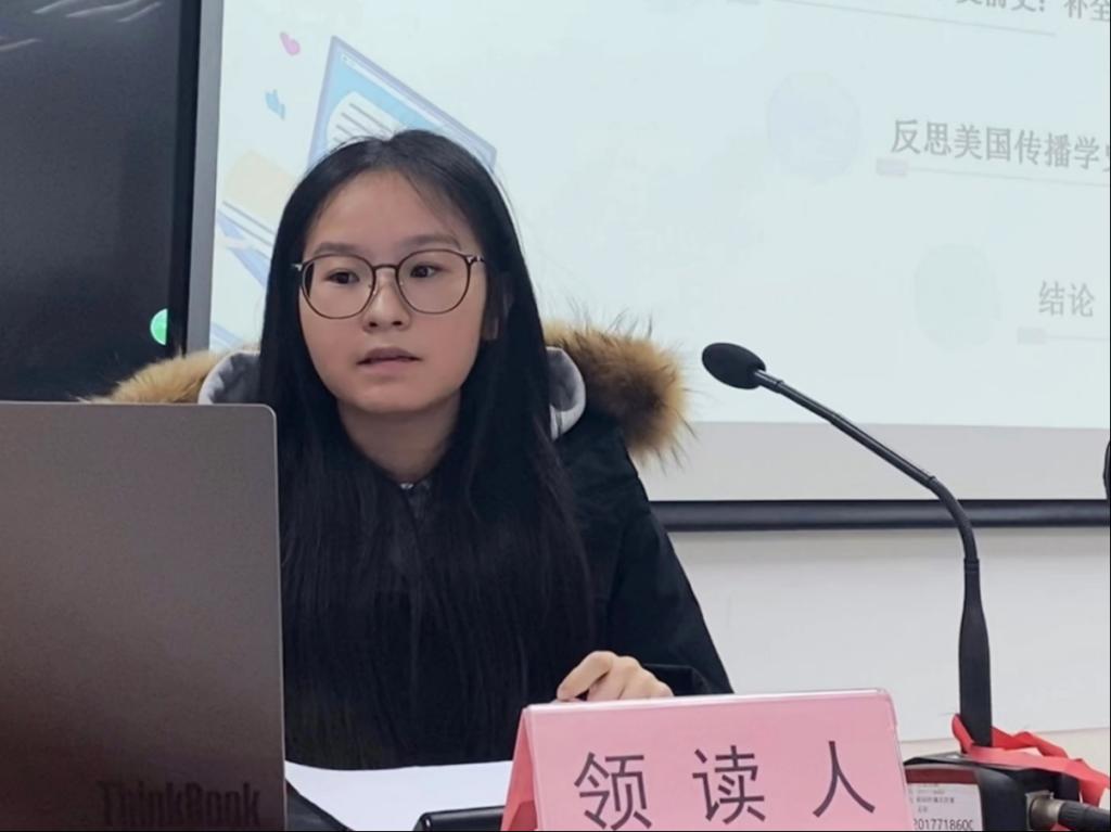 桑婧鹏同学首先介绍了美国传播学史中两条宣传分析的路径以及宣传研究从批判性研究转向科学性研究的历史必然性,之后对作者的观点进行了概括:由于工具理性和价值理性的背离,使得宣传的概念逐渐消失在美国传播学研究中。本文从宣传概念的消亡,延伸到对美国传播学研究结构性矛盾的思考,桑婧鹏同学认为这种层层递进,以小见大的写作方式同样值得我们学习借鉴。