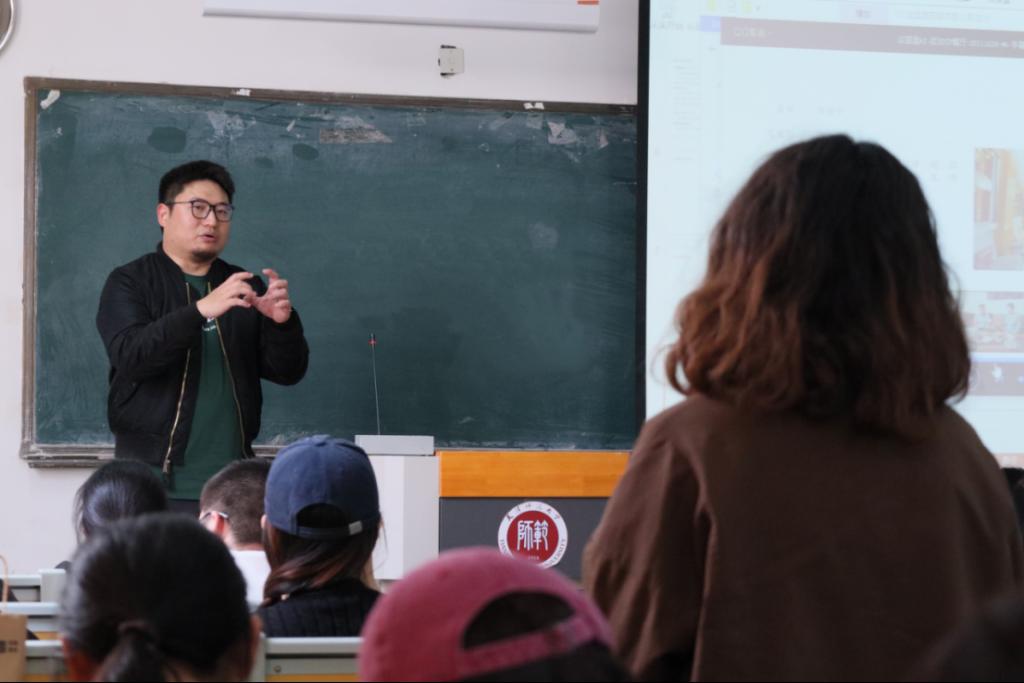 讲座伊始,王巽导演简要介绍了纪录片《这里是西藏》的创作背景,并围绕外宣、纪录片以及制作周期这三个角度,以专业视角,逐一举例分析了创作策略及表达手法。王巽导演谈到,在策划初期,团队共同商讨,起草构建拍摄框架,预备多选题方案。 展示全面立体真实的中国是本次纪录片拍摄的重点与最终目的,因此,创作团队注重软性传播效能,以“亲身体验”为影片特色,以六名外籍记者的“西藏Vlog”为呈现形式,创作了佛公司、甜茶馆、尼泊尔餐厅等小切口选题的纪录片。他特别提醒同学们国际传播需要严谨慎重,因为它代表中国声音。