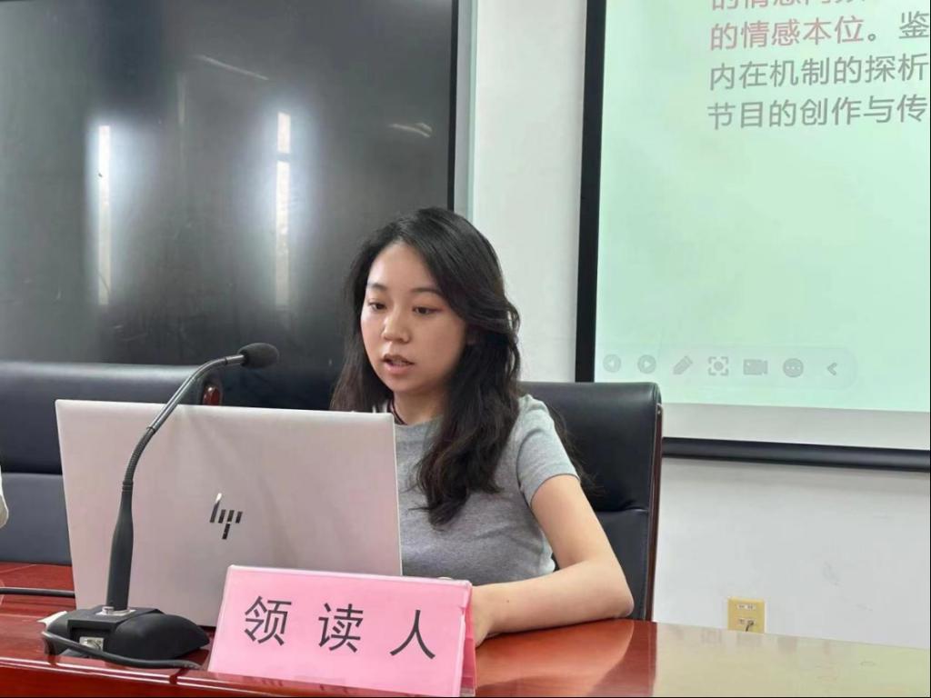 王瑜潇同学从共情传播的概念、传播机制、传播技术和传播网络四方面向大家介绍了文化类综艺节目中运用共情传播的重要性及其机制。通过共情传播,观众能更好地与节目中呈现的传统文化共鸣,进而促进文化的传承。在最后,王瑜潇同学对于历史文化传播给出了自己的思考:对于传统文化的传承与传播,不能仅依靠技术来实现,更需要我们亲身接触与学习。