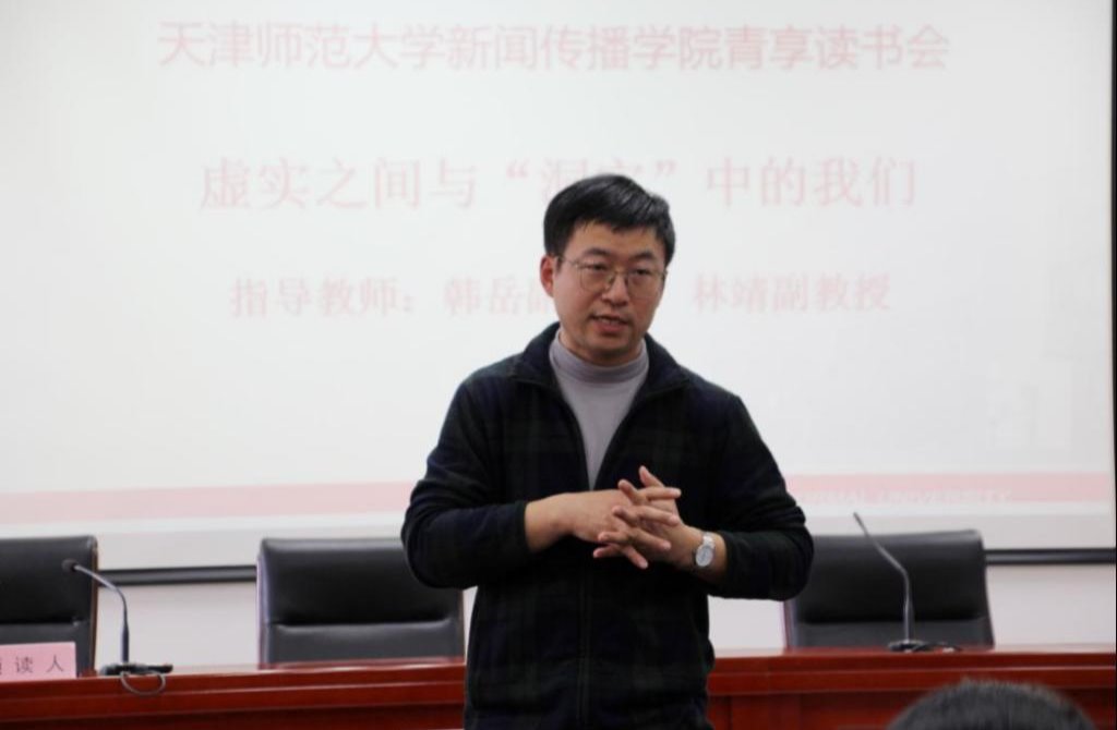 11月21日中午,本学期第三期“青享”读书会在图C213召开,主题为“虚实之间与‘洞穴 ’中的我们”。本期领读人为2023级传播学段向阳和2024级传播学杨帆,韩岳副教授和林靖副教授担任本次读书会指导老师,2024级新闻与传播张静怡担任主持人。