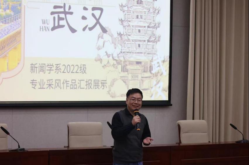 张洪伟老师以幽默的语言对大家的采风活动进行了点评,他高度认可大家的工作态度,并对同学们能够独立自主完成一系列新闻作品表达了赞赏。“一名好记者,眼里就要有光。这种光首先是新闻理想,其次是家国情怀,最后就是一种自信和乐观的态度。”张老师总结道。