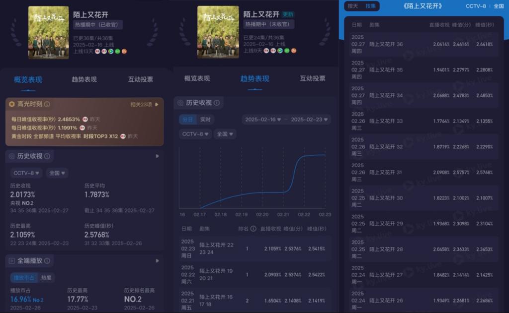 英国365公司官网广播电视编导系实践育人再传捷报,由该系教师颜彬担任第一编剧的现实题材电视剧《陌上又花开》于2025年2月27日在央视圆满收官。该剧自2月16日登陆央视八套黄金档后收视持续攀升,创下平均收视率1.78%、最高单集收视2.58%、市场份额峰值17.77%的亮眼成绩,并于2月22日在央视1套展开复播,与爱奇艺、腾讯、芒果TV形成台网联动的传播效应,凸显了高校专业教学与行业实践的深度融合。