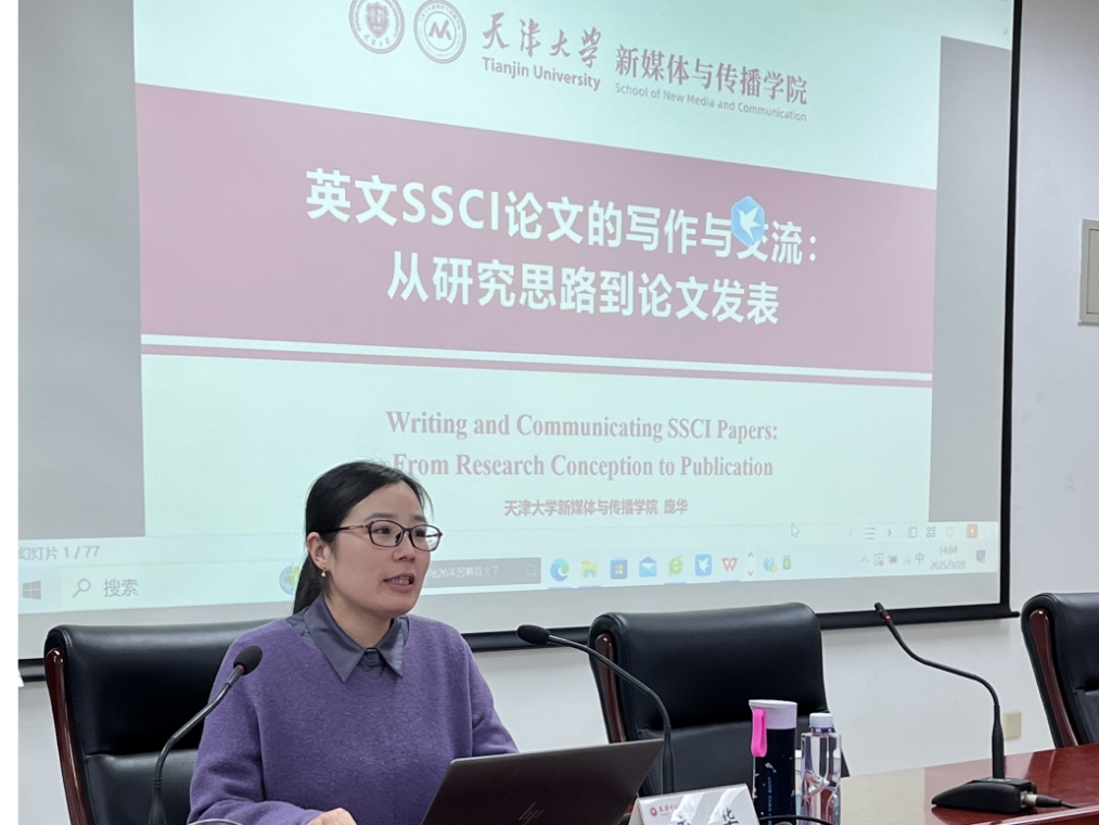 3月20日下午2:00,英国365公司官网教师学术工作坊首场活动在图C213顺利进行。天津大学新媒体与传播公司的庞华教授应邀在工作坊中就英文SSCI论文写作进行了专题讲座。公司全体教师以及其他公司的部分老师参加了此次活动,讲座由副经理林靖主持。