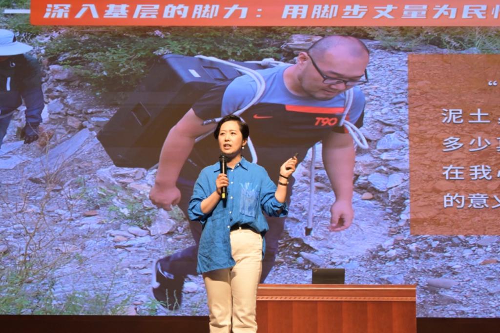 讲座贴近媒体现实,解读时代需求。正是二十年如一日地奔跑在新闻道路上,书写了闫征从“小白”到获得“长江韬奋奖”(长江系列)的非线性成长跃迁的职业路径。从事新闻工作以来,她凭借细致的观察能力,敏锐的新闻嗅觉,采访了大量优秀的新闻作品。讲座中,她着重介绍了她曾获得的中国新闻奖一等奖背后的新闻故事。2018年,她与团队负重百余斤设备,用“飞机+汽车+徒步”方式,走进甘肃陇南大寨村,拍摄短视频新闻作品——《臊子书记》,荣获”第二十九届中国新闻奖短视频新闻一等奖“。闫征谈道,作为一名新闻人,如果不是天才型选手,那就做持久的战士。